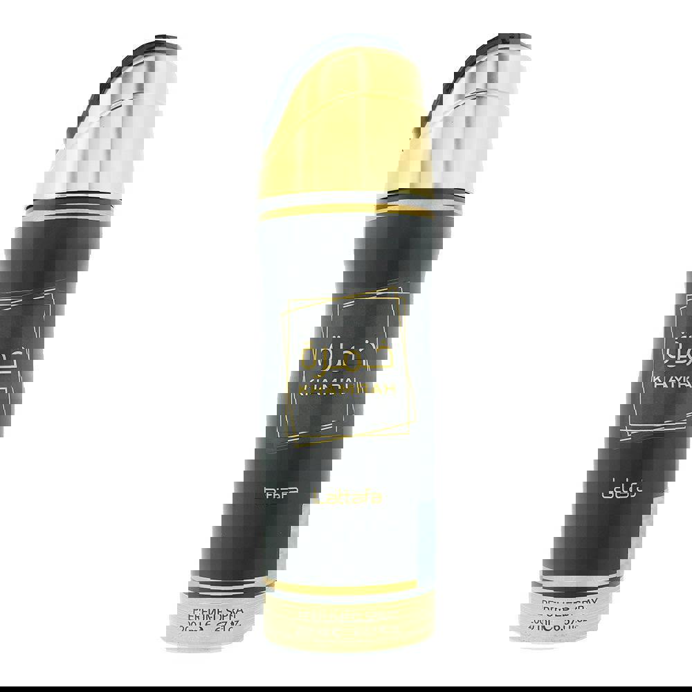 Lattafa Khamrah Perfumed Body Spray is a fragranced body spray designed for easy, everyday use. Presented in a 200ml format, it offers a convenient way to refresh your scent throughout the day, whether you are getting ready in the morning or topping up after the gym or commute.