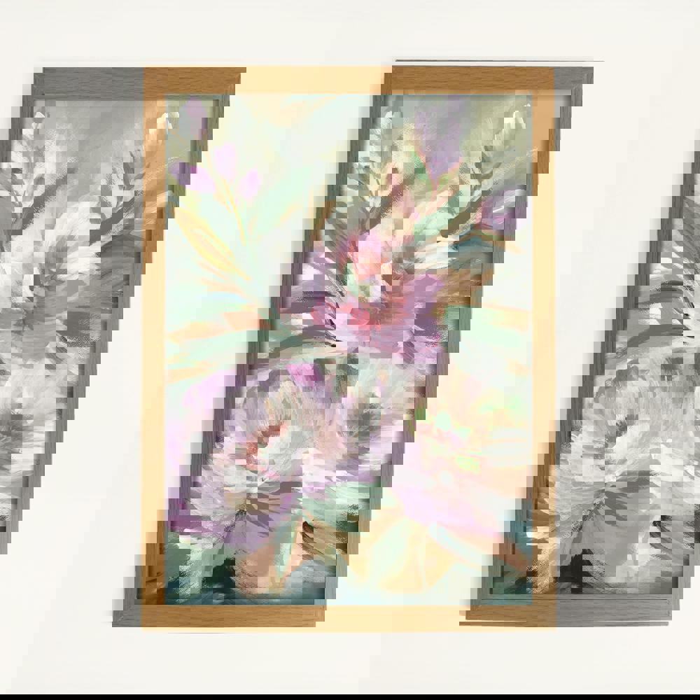 Bring a refined finishing touch to your interior with the Abstract Floral Print from Laura Ashley, presented in a wood frame. Rendered in an elegant gouache style, the design captures the delicate beauty of florals through soft, expressive brushstrokes and subtle texture. A harmonious blend of pastel tones gives the artwork a calm, contemporary feel that sits comfortably in both modern and more classic spaces.