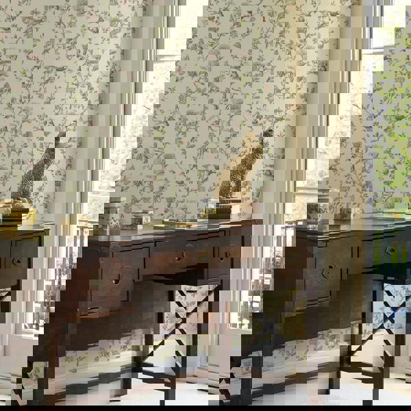 This detailed design features blossom, berries, and birds in a traditional, autumnal print that brings life to any room