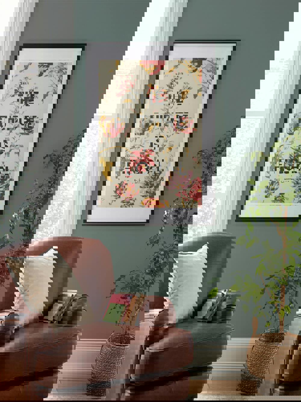 Finished with a black frame, this piece is designed to make an impact on the wall, while the bold slogan detail adds a contemporary note to the archival floral inspiration. Ideal for styling in living areas, hallways or bedrooms, it offers an easy way to introduce pattern and personality without overwhelming the room.
