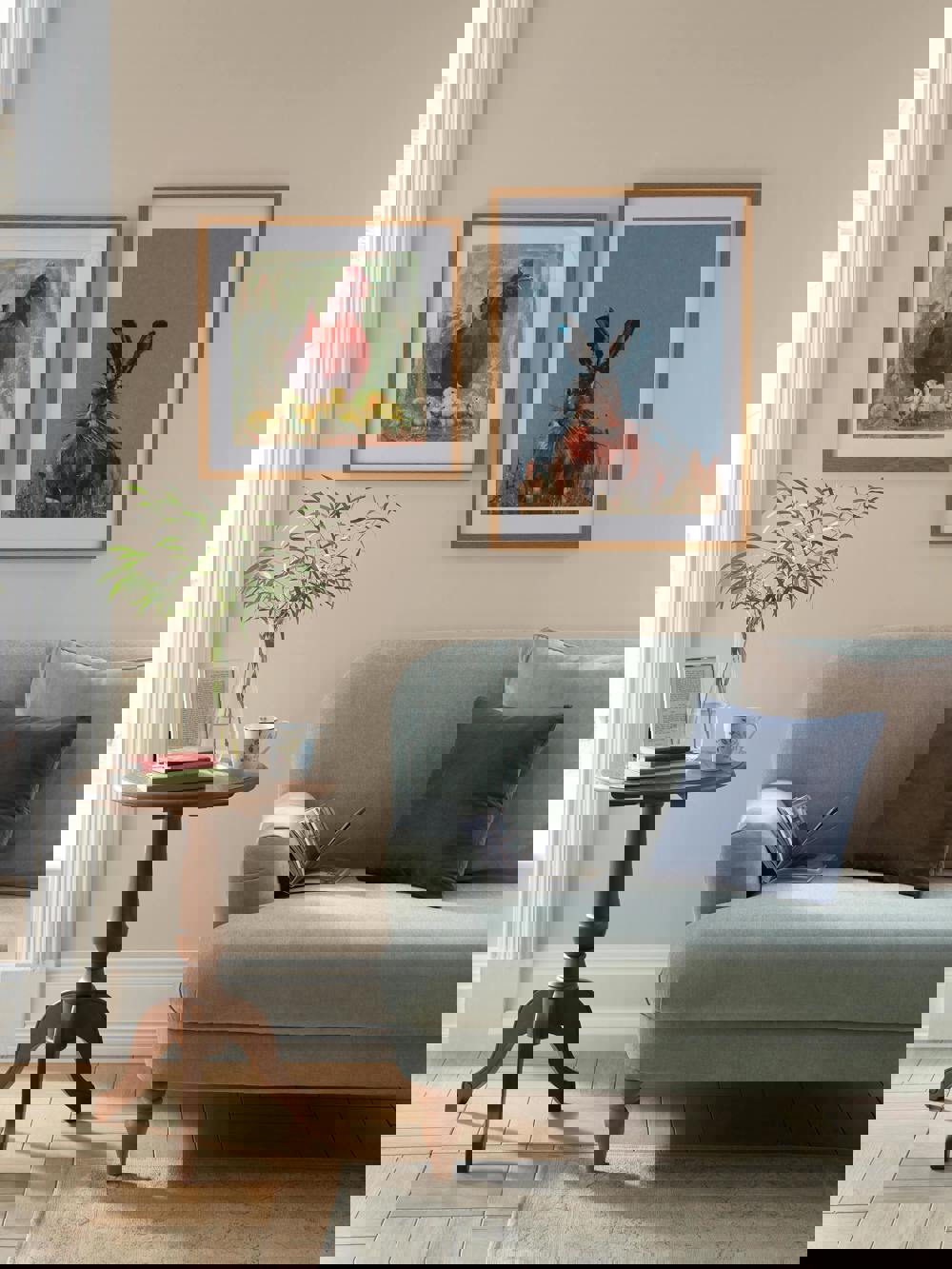 Bringing a countryside-inspired focal point to your space, the Laura Ashley Hare Print in a Wood Frame showcases a striking hare design, originally painted on canvas. Bold brushstrokes and earthy tones give the artwork a distinctive sense of character, balancing rustic charm with a natural, considered feel that suits a range of interiors.