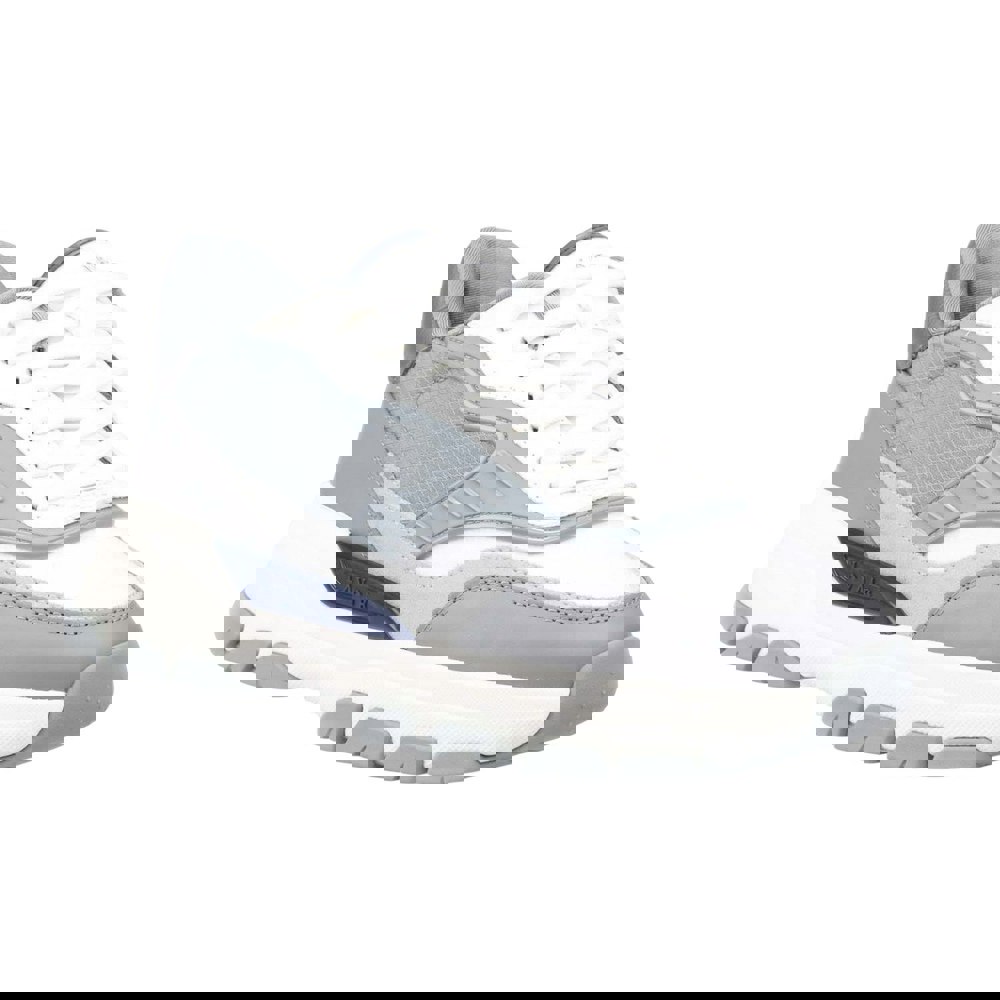 These low-cut trainers combine a mixed-material upper in nappa leather, nylon and suede with a neoprene lining. A round toe and flat profile keep the silhouette clean, while contrast colour detailing adds definition to the white and grey finish.