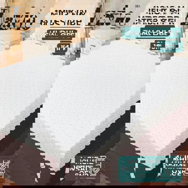 This Lavio extra thick 4 inch memory foam mattress topper is designed specifically for a small double mattress delivering instant pressure relief and improved comfort without replacing your bed. Featuring a dual-layer design with 2 inch cooling gel memory foam and 2 inch bamboo charcoal memory foam this mattress topper helps regulate temperature while providing balanced support.
