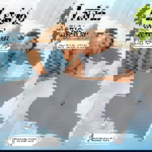 The Lavio Horn & Cylinder Ergonomic Pillow combines a horn-shaped high‑profile side with a low cylindrical centre offering a unique sculpted design that supports your head and neck in any sleep position. The central dip and raised edges cradle your head to reduce sliding during sleep helping to prevent stiffness and neck pain.