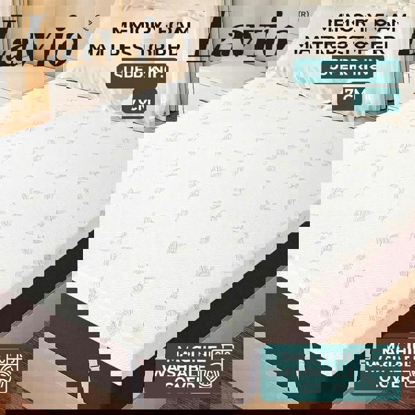 Upgrade your super king bed with our Lavio super king mattress topper. This dual layer mattress topper combines soft memory foam with supportive foam to provide a memory foam pressure relief mattress topper that eases tension and promotes restful sleep. The breathable topper cover keeps airflow flowing for a fresh and comfortable bed. An anti-slip base with adjustable corner straps keeps the topper securely in place while the washable cover ensures easy cleaning. Built with durable materials this mattress topper maintains comfort and support for years of use.