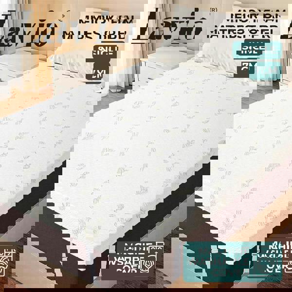 Upgrade your Single bed with the Lavio Single Memory Foam Mattress Topper. Soft memory foam combined with supportive foam enhances mattress comfort relieves pressure points and provides superior mattress support. The breathable air-layer polyester cover keeps the mattress topper fresh and hygienic while the anti-slip base and adjustable corner straps ensure the mattress topper stays securely in place. Ideal for home or guest beds this dual-layer mattress topper with removable cover is easy to clean and maintains long-lasting comfort.