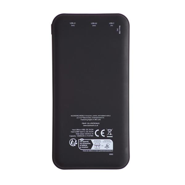 Harry Potter Light-Up Power Bank - Patronus Expecto Patronum! Enchant Your Charging Experience Bring the magic of the Wizarding World to your everyday life with the Harry Potter Light-Up Power Bank. Watch in awe as Harry’s wand magically lights up to reveal his powerful stag Patronus, illuminating your charging experience. Key Features: • Magical Light-Up Design: See Harry’s wand conjure his iconic stag Patronus with a magical light-up effect during charging. • Official Harry Potter Merchandise: An authentic and officially licensed product for true fans. • High Capacity: With a 10,000 mAh capacity, this power bank can charge your mobile device up to 4 times. • LCD Power Level Display: Easily monitor your power bank's battery level with the built-in LCD display. • Dual Device Charging: Charge two devices simultaneously with 2 x USB-A ports. • Convenient Inputs: Features 1 x USB-C port and 1 x Micro-USB port for versatile recharging options. • Control Light Feature: Use the dedicated button to control the light-up effect. • Included Charging Cable: Comes with a USB-A to USB-C charging cable for convenience. Technical Specifications: • Battery Type: Lithium polymer • Capacity: 10,000 mAh • Input (USB-C): DC 5V/2A • Input (Micro-USB): DC 5V/2A • Total Output (USB-A): DC 5V/2.1A What's in the Box: • Harry Potter Light-Up Power Bank • USB-A to USB-C Charging Cable Perfect for wizards and Muggles alike, this Harry Potter Light-Up Power Bank is the ultimate blend of magic and technology. Whether you’re traveling to Hogwarts or just around the corner, keep your devices charged and experience the wonder of Harry’s Patronus.