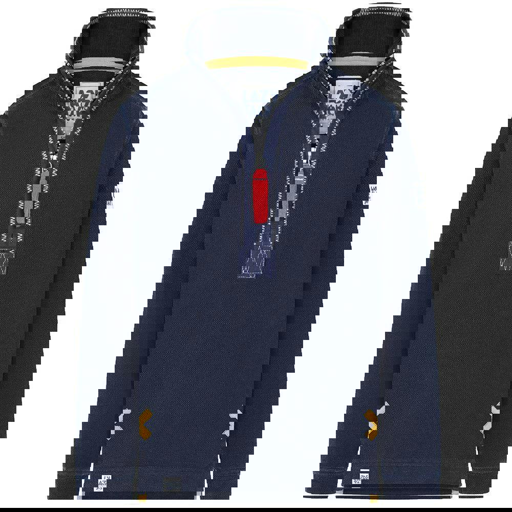 Lazy Jacks boys’ pique quarter zip sweatshirt in marine. Made from 100% cotton with a pre-washed, soft-touch finish, it has a plain design with a logo detail. The breathable fabric technology and relaxed fit keep the look simple and easy to wear.