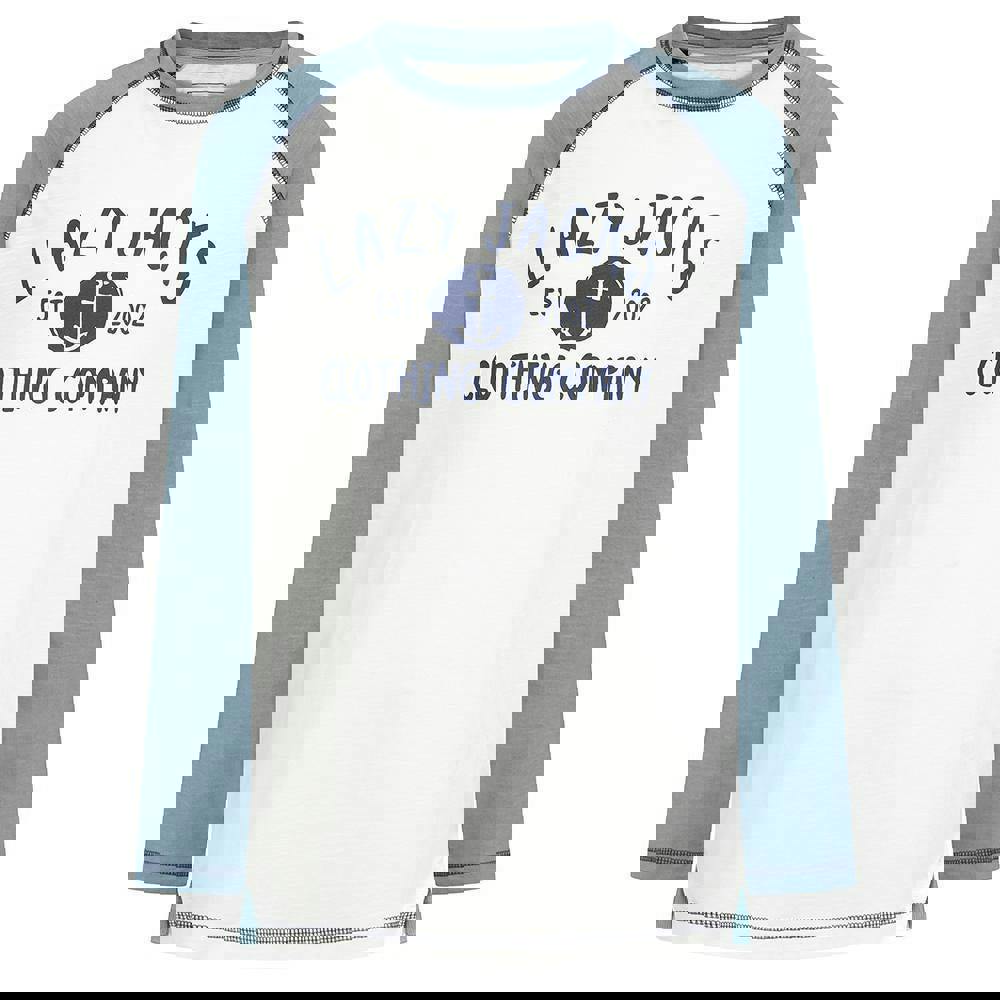 This boys’ long-sleeved T-shirt comes in Niagara Blue with a printed design. Made from 100% cotton, it has a crew neckline and raglan sleeves for a clean, casual shape. Sealed side splits add a neat finish, and the fabric is supersoft.