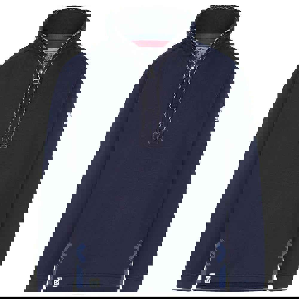 Long sleeves and a standing collar give it a structured shape, while the pull over style includes a quarter zip fastening. The fabric technology is breathable.