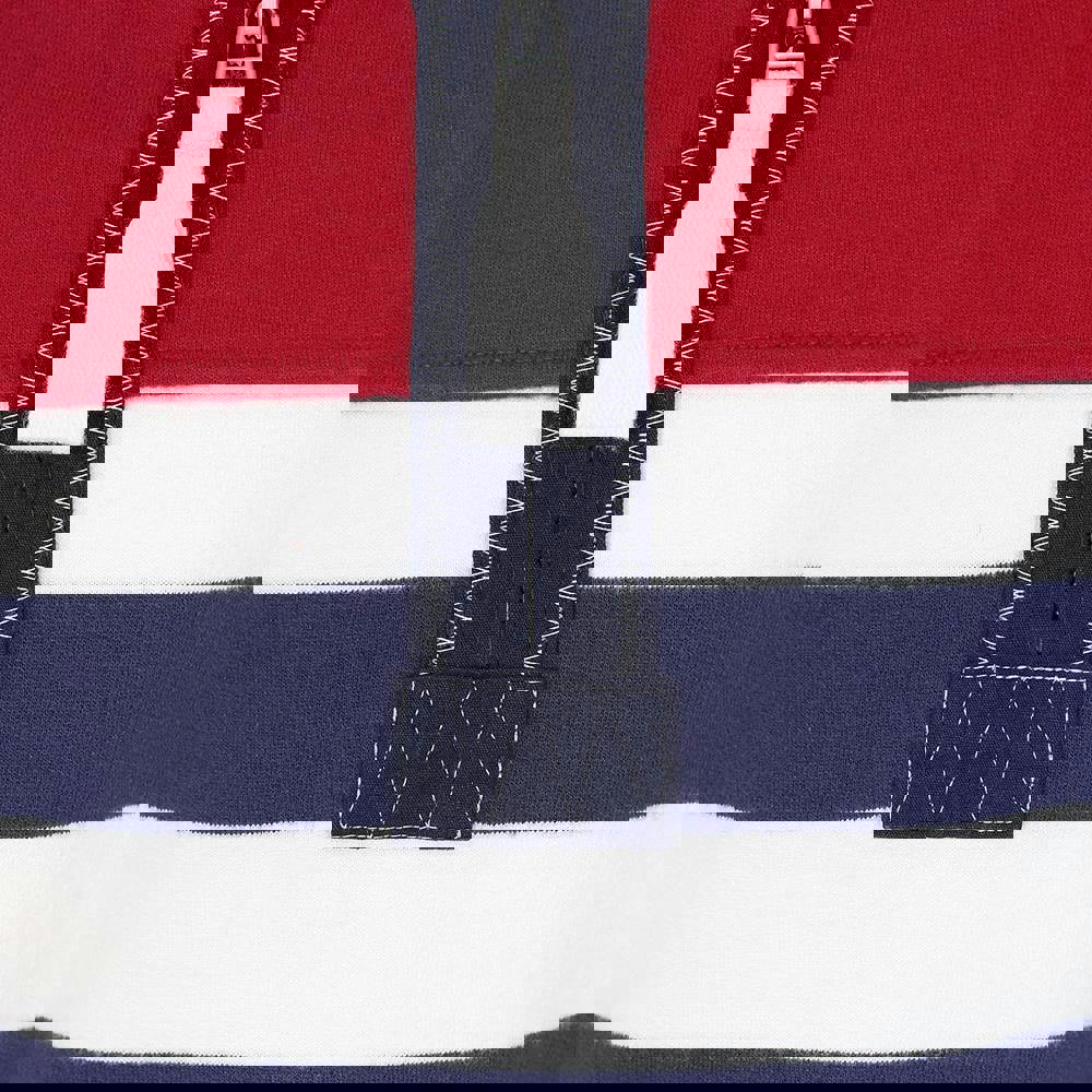 The design includes contrast colour detailing, a striped printed finish and an embroidered logo.