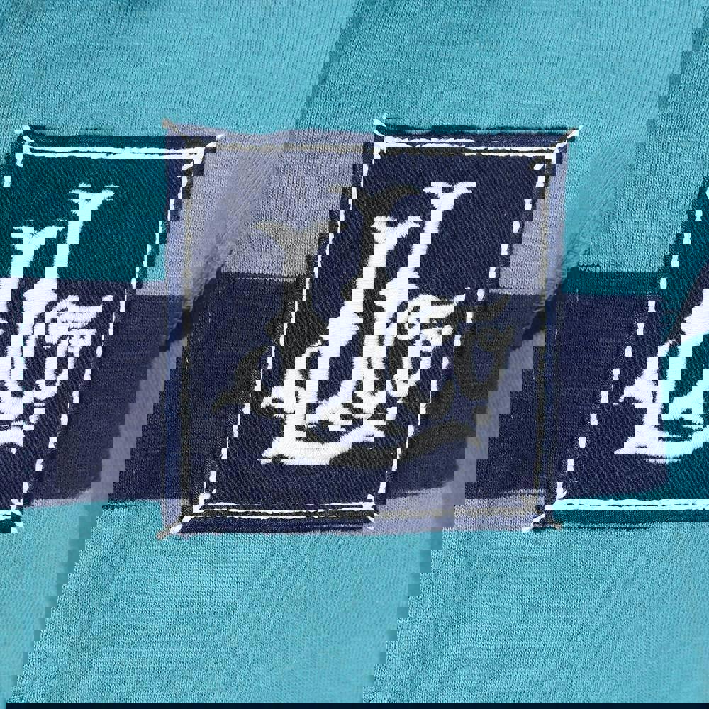 Lazy Jacks boys striped rugby shirt in teal, made from 100% cotton with a pre-washed, soft-touch finish. The design combines stripes with a logo and a classic turn down collar for a traditional rugby look. Long sleeves and fitted cuffs keep the shape neat, while the button fastening completes the front.