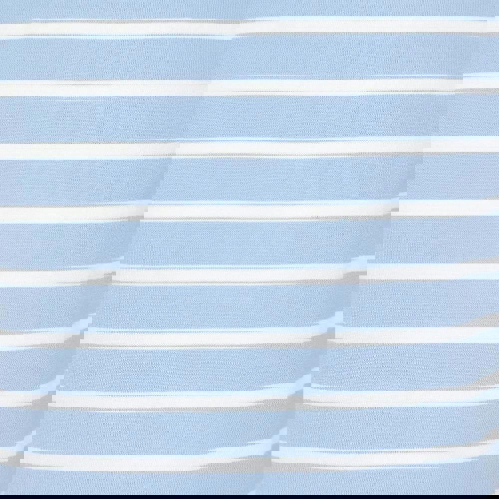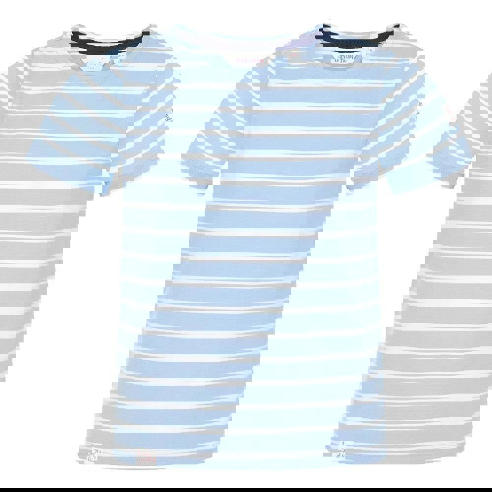 Lazy Jacks Girls Breton Short-Sleeved T-Shirt in sky is made from 100% cotton in a jersey fabric. The Breton style is finished with a printed design and a classic crew neckline. Short sleeves keep the look simple and easy to wear.