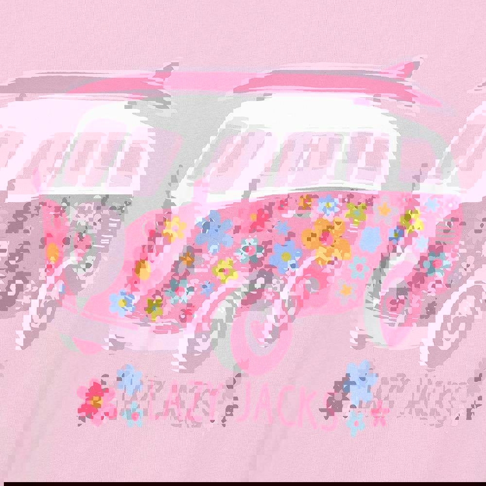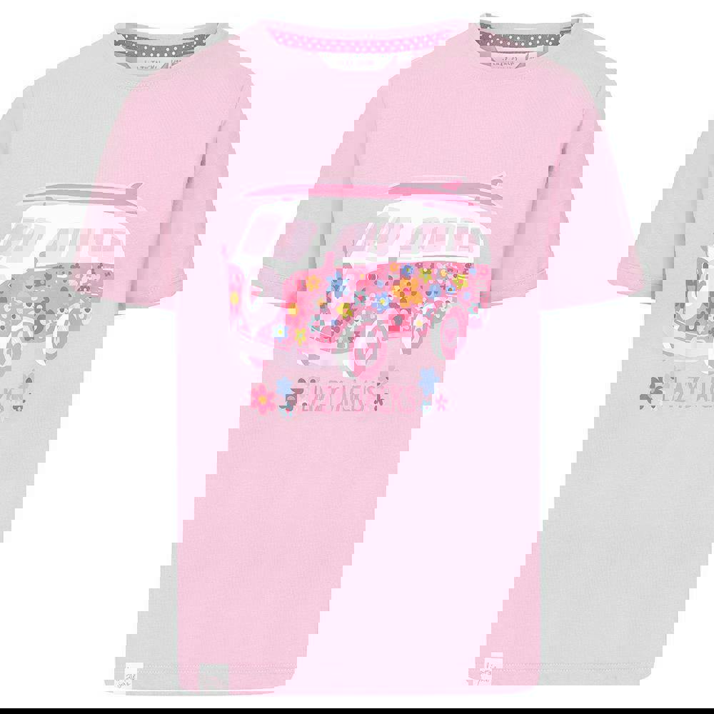 This girls’ Lazy Jacks T-shirt is made from 100% cotton in a jersey fabric with a supersoft handle. It comes in pink with a printed design and a classic crew neckline. Short sleeves keep the silhouette simple and easy to wear.