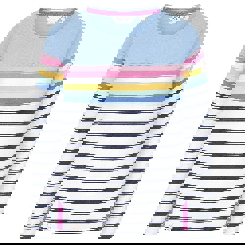 This girls’ long-sleeved T-shirt from Lazy Jacks comes in sky and multicoloured tones with a printed design. Made from 100% brushed cotton, it has a supersoft handle and a classic crew neckline.