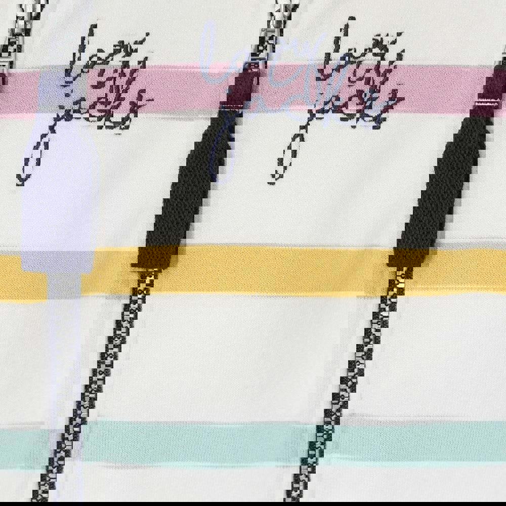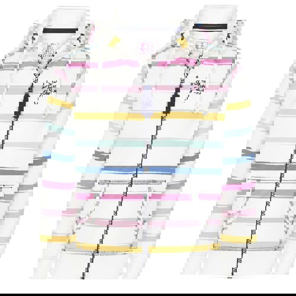 This girls’ full zip hoodie is made from 100% cotton with a soft-touch finish and durable fabric technology. The pastel striped design is finished with a logo detail, keeping the look clean and easy to wear.