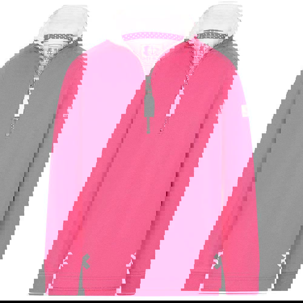 This girls’ quarter zip sweatshirt from Lazy Jacks comes in Sorbet and is made from 100% cotton. The fabric is brushed, pre-washed and finished with a soft-touch feel, with breathable fabric technology. A plain design with a cross detail keeps the look simple and clean.