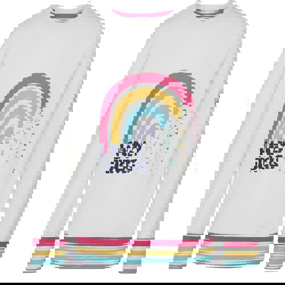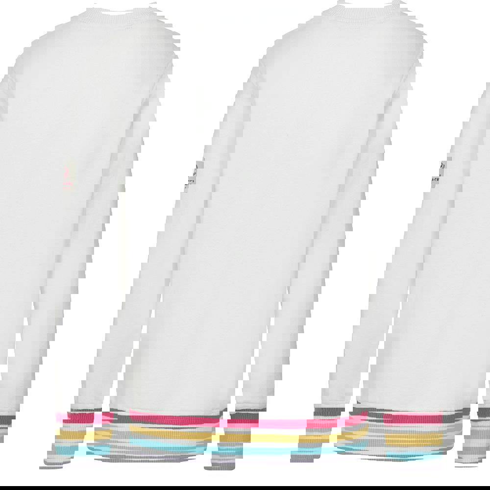 This girls’ sweatshirt is made from 100% cotton with a pre-washed finish and a sueded feel. It has a printed logo design and a classic crew neckline for a clean, simple look.