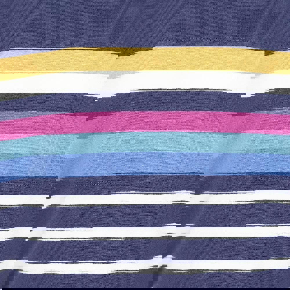Lazy Jacks girls striped Breton top in Prism Dusty Blue. Made from 100% cotton, the fabric is brushed, pre-washed and finished with a soft-touch feel. The design combines a striped pattern with plain sections and a logo detail. A round neckline and long sleeves complete the classic Breton shape.