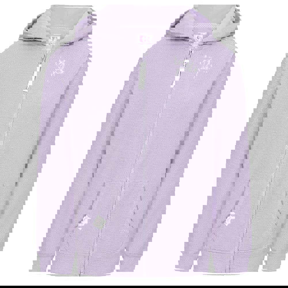 This girls’ full zip hoodie from Lazy Jacks comes in lilac with a plain finish and logo detail. Made from 100% cotton, it has a soft-touch feel and a lightweight fabric technology for easy everyday wear.