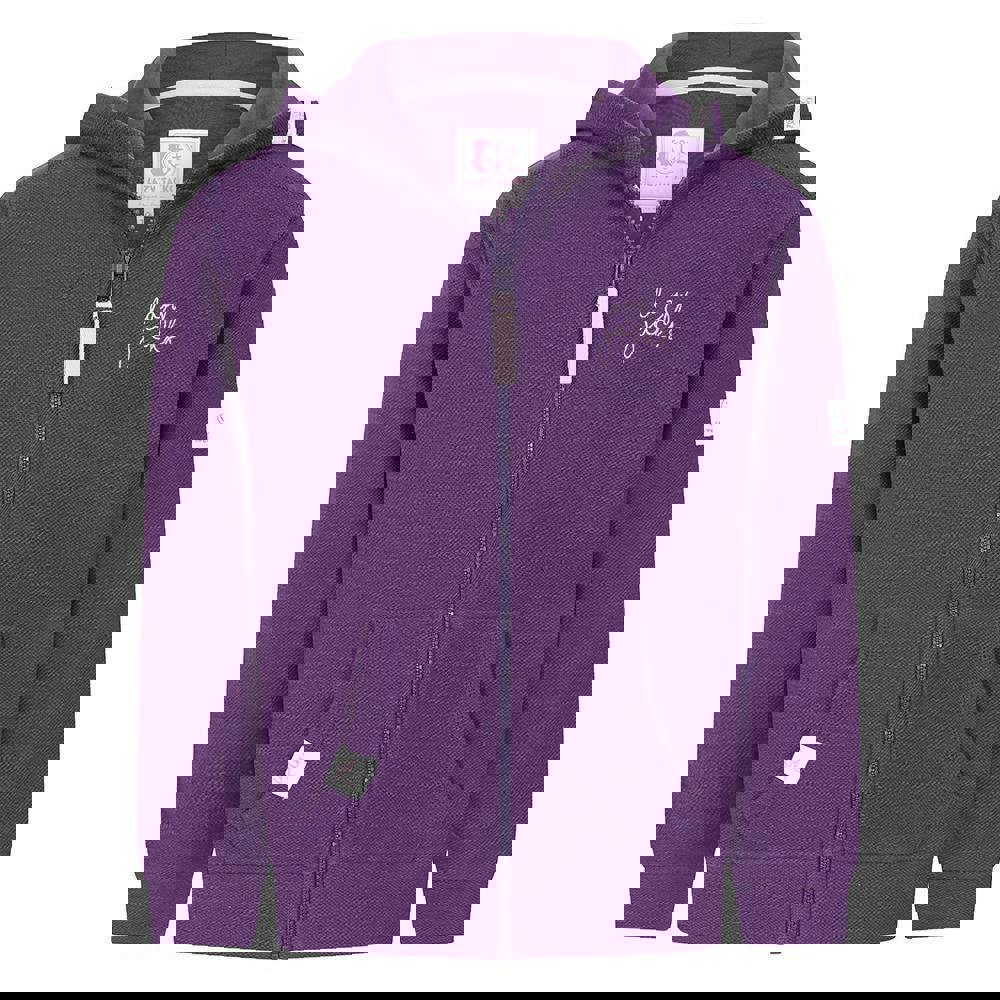 This girls’ full zip hoodie from Lazy Jacks comes in Loganberry with a plain finish and logo detail. Made from 100% cotton with a soft-touch feel, it has a lightweight construction for easy layering. The hooded neckline includes a sew-on hood with a drawstring, while the long sleeves are finished with fitted cuffs.