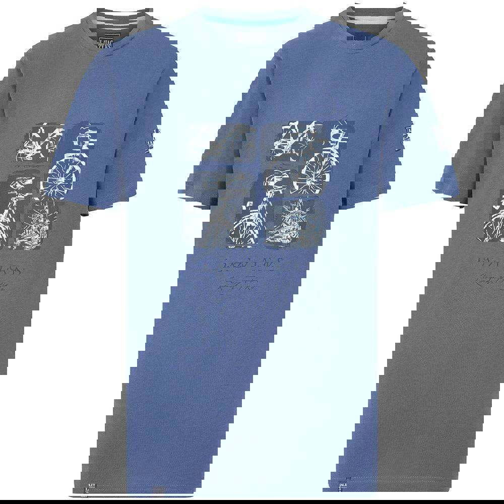 Lazy Jacks men’s bicycle T-shirt in denim is made from 100% cotton with a printed design. It is finished with a crew neckline and short sleeves for a clean, casual silhouette. The fabric is breathable, lightweight and soft, making it well suited to everyday wear.