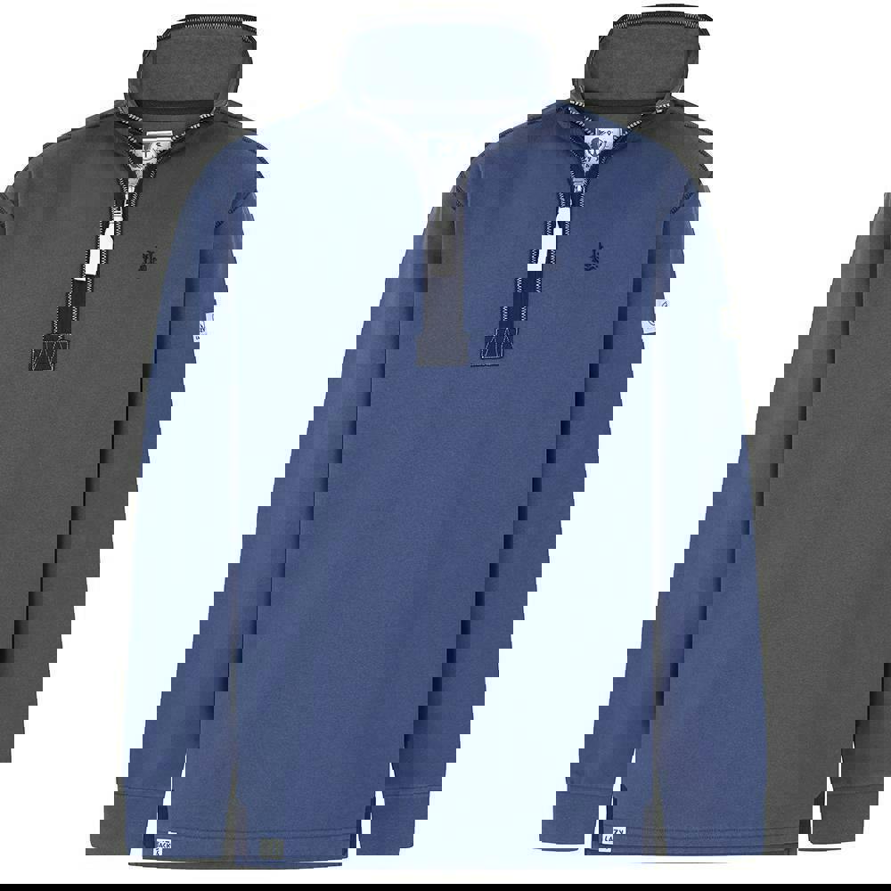 Lazy Jacks quarter zip sweatshirt in denim, made from 100% cotton. The brushed, pre-washed fabric has a soft-touch finish, with a plain design and logo detail. A fused stand up collar and quarter zip fastening create a clean neckline, while long sleeves keep the look classic for everyday wear.