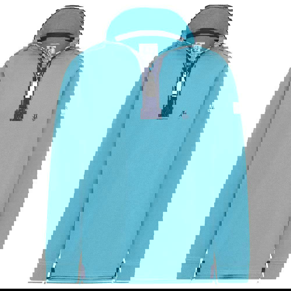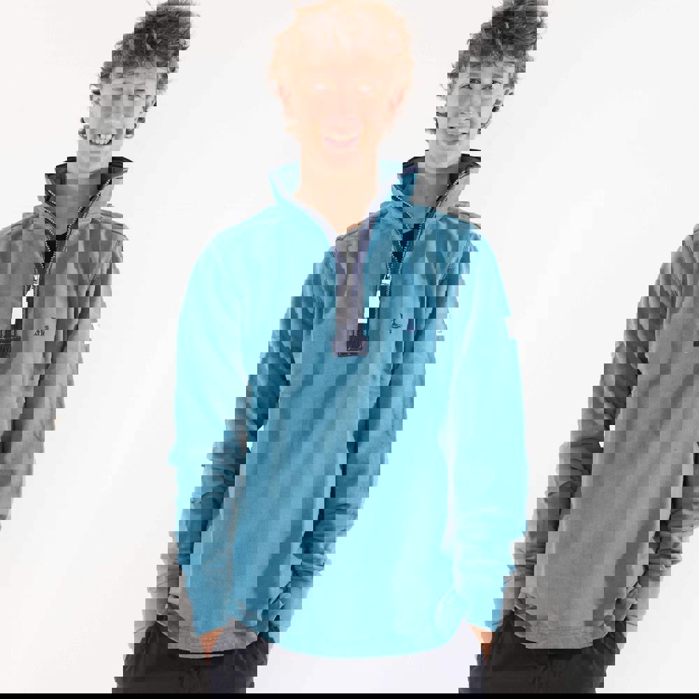 Lazy Jacks men’s quarter zip sweatshirt in teal, made from 100% cotton. The brushed, pre-washed fabric has a soft-touch finish, with a plain design and logo detail. A fused stand up collar and long sleeves give it a clean, practical shape, while the quarter zip fastening allows easy adjustment.