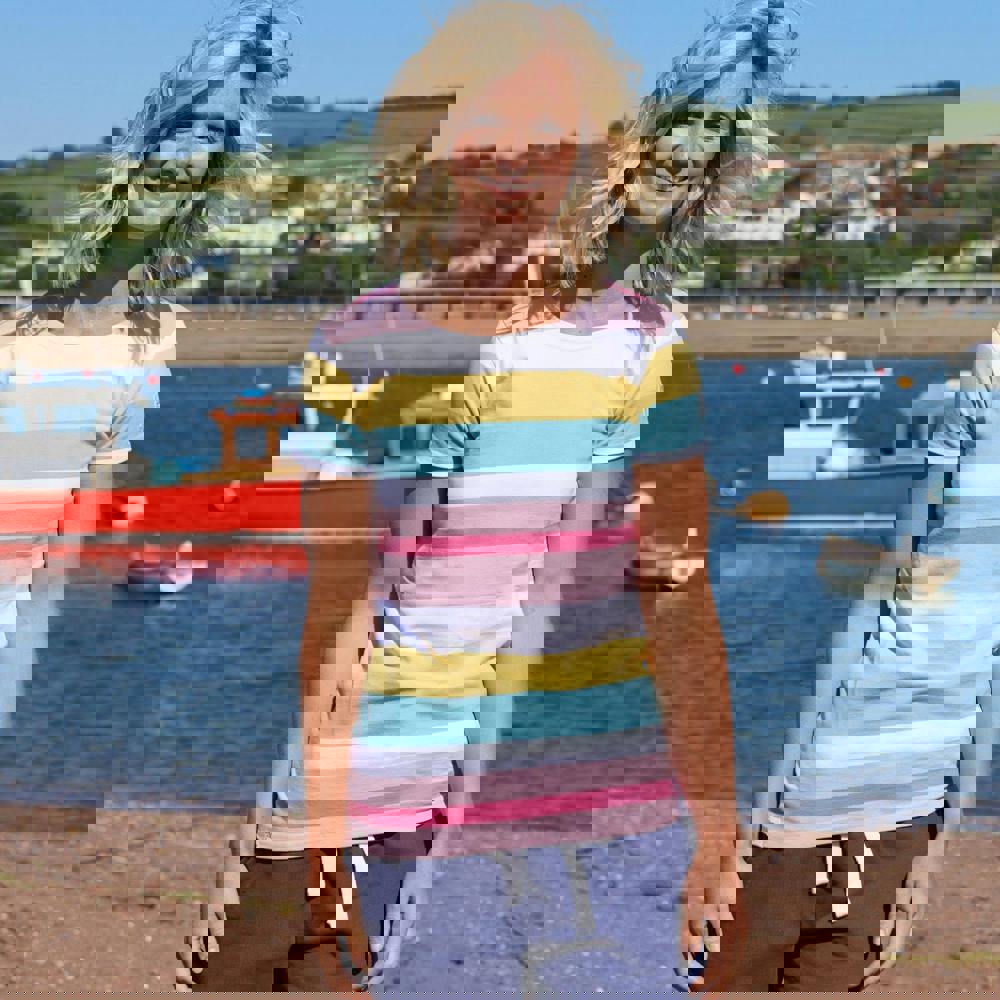Refresh your everyday wardrobe with the Lazy Jacks women’s Breton top in a multicoloured finish. Made from 100% cotton, it has a pre-washed, soft-touch feel and a plain design with logo detailing. The crew neckline and short sleeves keep the silhouette clean and easy to wear, whether styled on its own or layered.