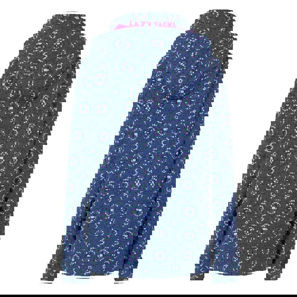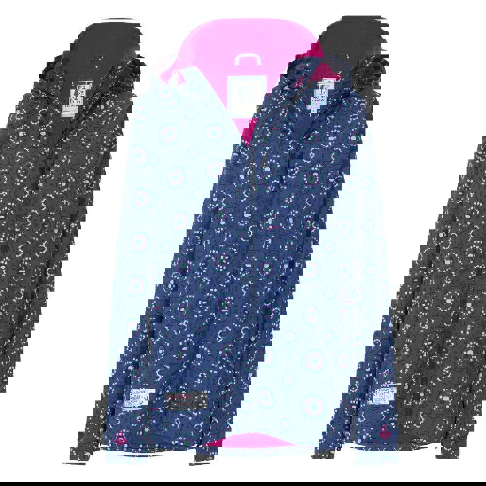 This women’s Circle waterproof jacket from Lazy Jacks is made with a 100% nylon outer and a PU coating, finished with a 100% cotton lining. The printed logo design is paired with a high neck and a hooded neckline for a practical, weather-ready shape.
