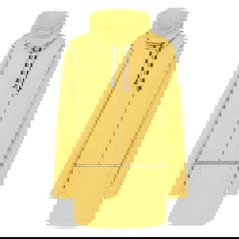 Lazy Jacks women’s sweatshirt in heather, made from 100% polyester. The plain design is finished with a woven patch for a clean, understated look. A roll neck and long sleeves create a covered silhouette, while the pull-over construction keeps the shape simple and easy to wear.