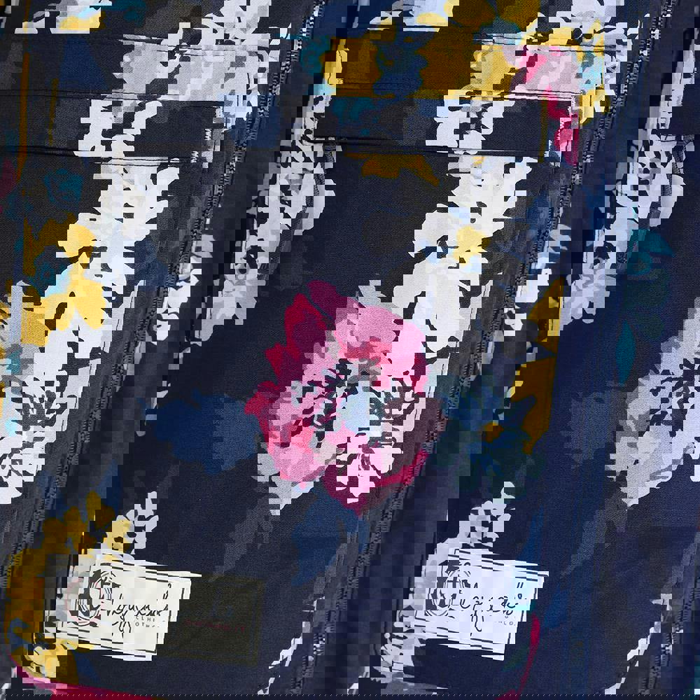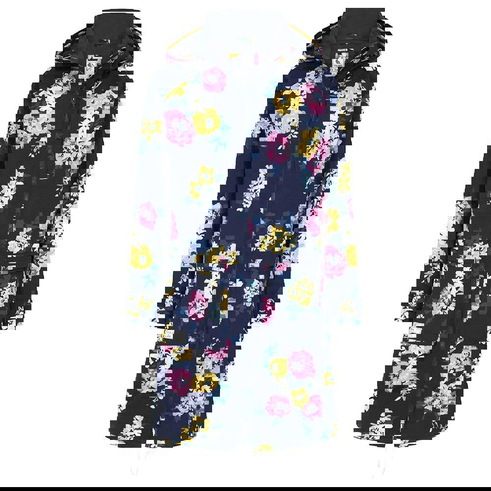 This longline waterproof jacket is made with a 100% nylon outer and a 100% cotton lining, finished with a PU coating. A printed logo design adds contrast, while taped seams and a storm flap support the waterproof construction. The high-neck silhouette includes a sewn-on hood with a toggle adjuster for a secure feel.