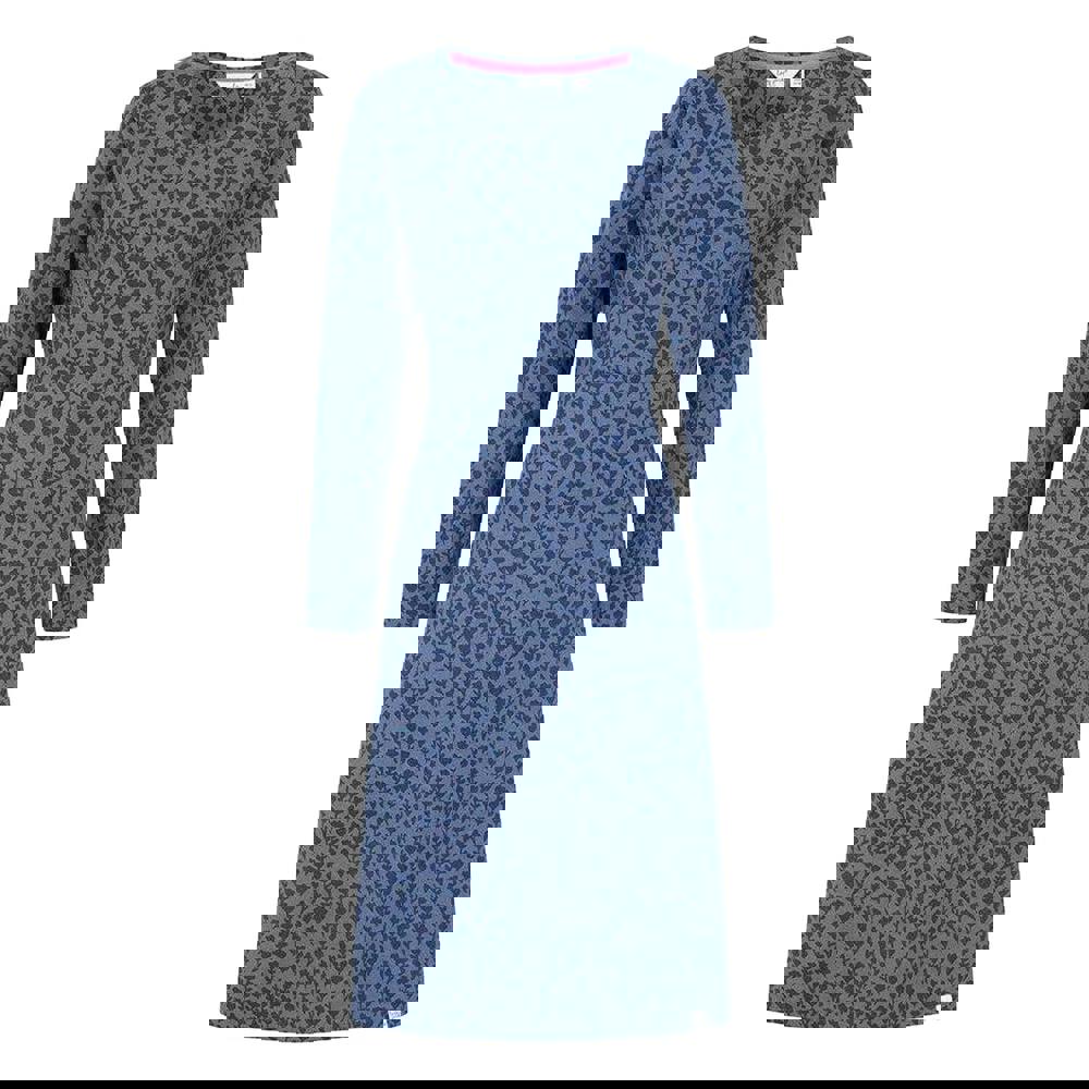 This women’s long-sleeved midi dress is made from 96% cotton and 4% elastane, with a pre-washed finish. The fabric is shrink resistant and includes stretch for added flexibility. A printed design brings detail to the look, while a scoop neckline keeps the shape clean and simple.