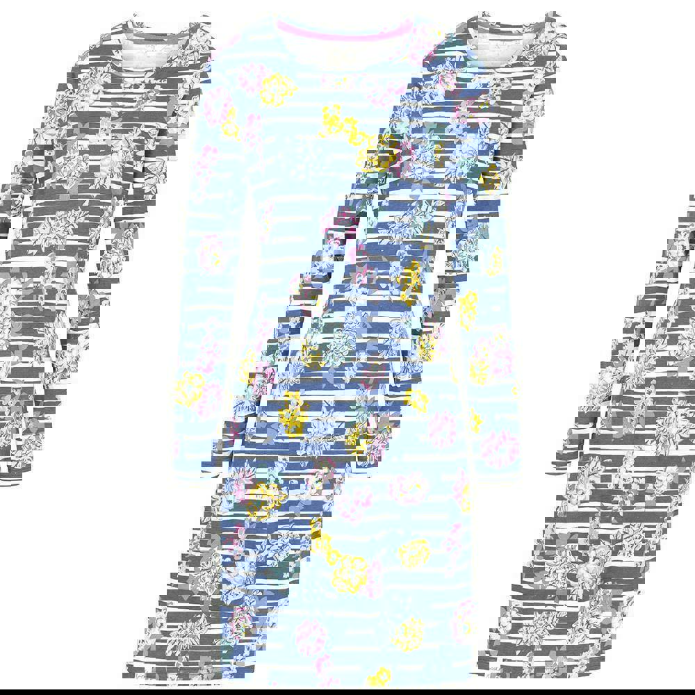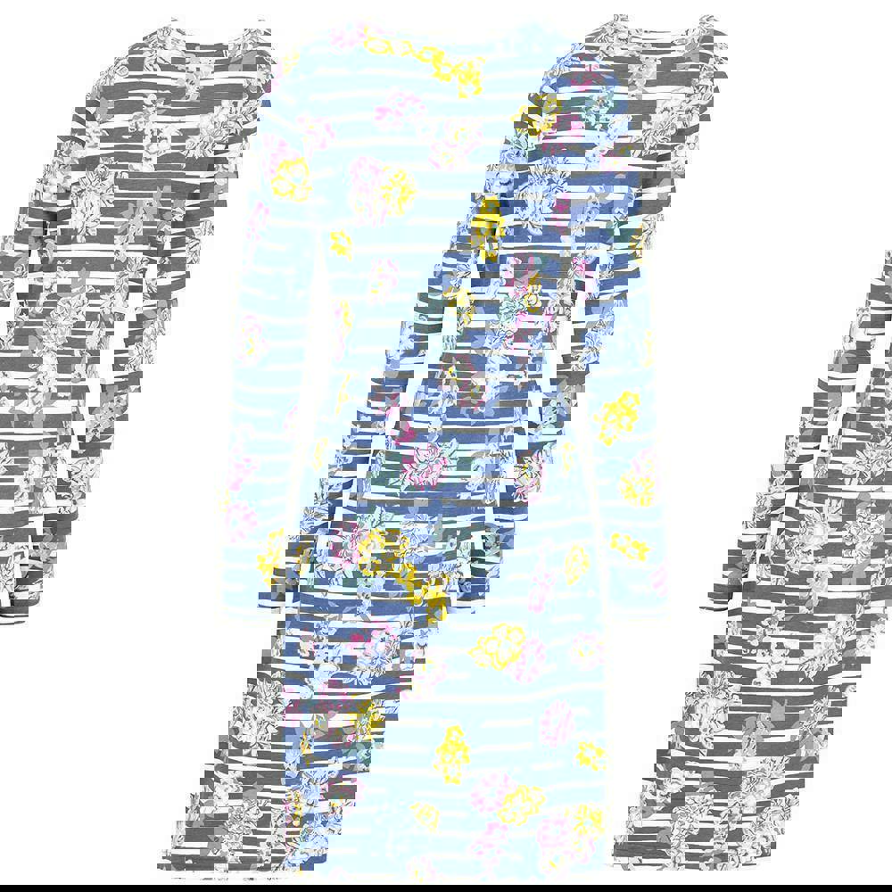 Made from 100% cotton jersey, this women’s T-shirt dress has a breathable, lightweight feel. The multicoloured design combines a flow print with stripe detailing for a distinctive finish.