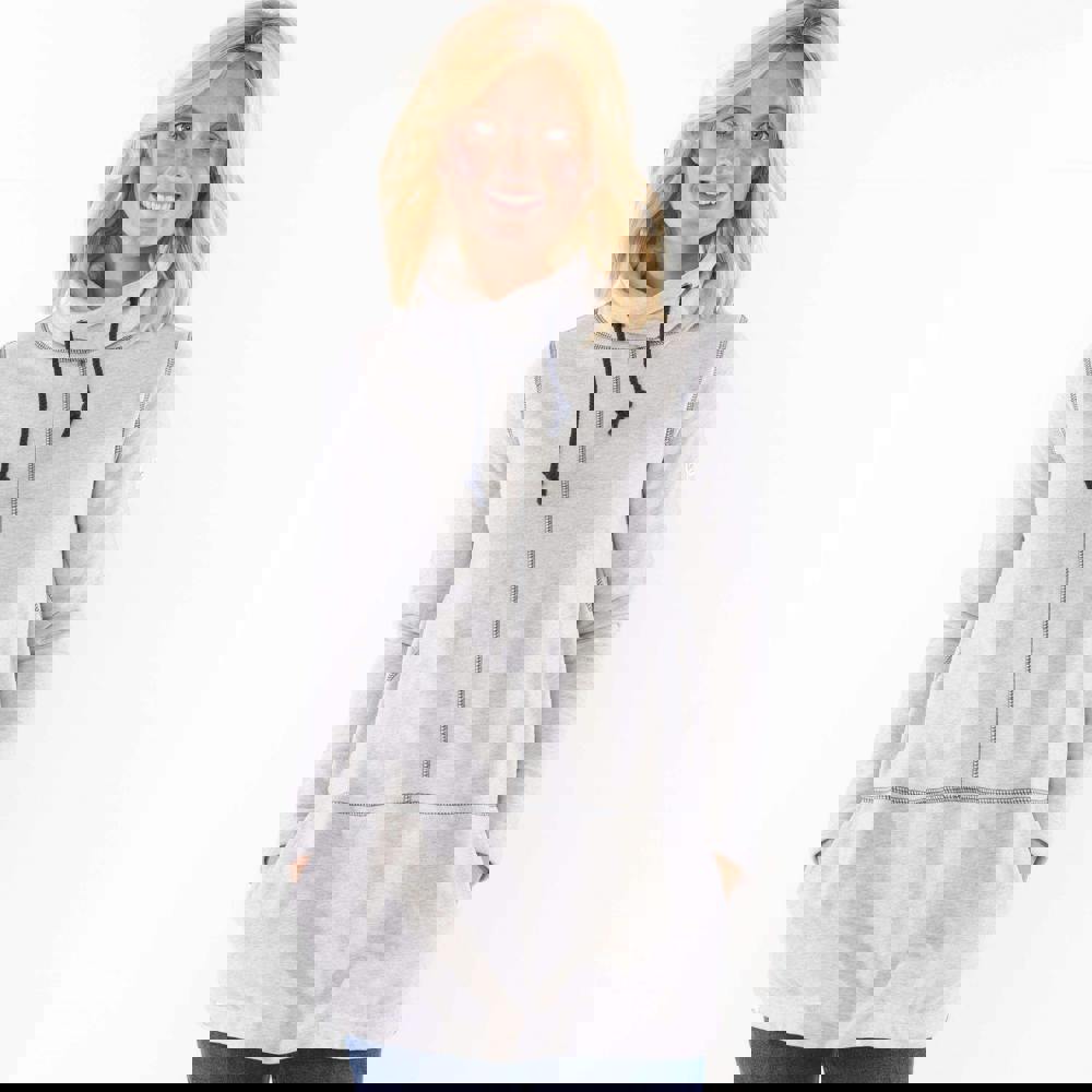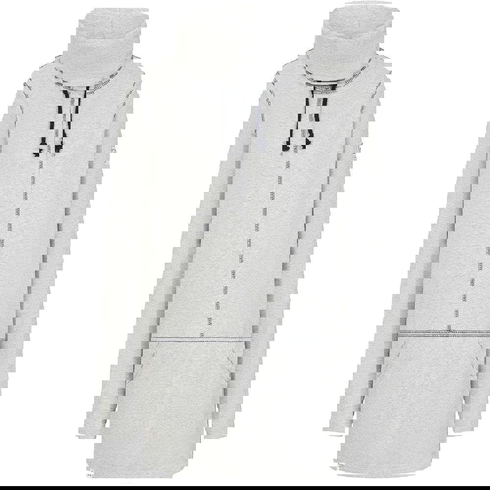 Made from 100% cotton, this women’s sweatshirt is finished in grey marl with a printed design. The long length and pull-over construction create a clean, easy-to-wear shape, while the drawstring detail adds a practical finishing touch. A cowl neck combines with a fused stand up collar and roll neck styling for a distinctive neckline, suited to everyday layering.