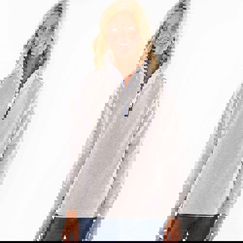 Made from 100% cotton, this women’s quarter zip sweatshirt is cut from pre-washed fabric for a clean, casual finish. The grey marl base keeps the look understated, with a plain design and logo detail for subtle branding. A fused stand up collar frames the neckline, while long sleeves provide classic sweatshirt coverage.