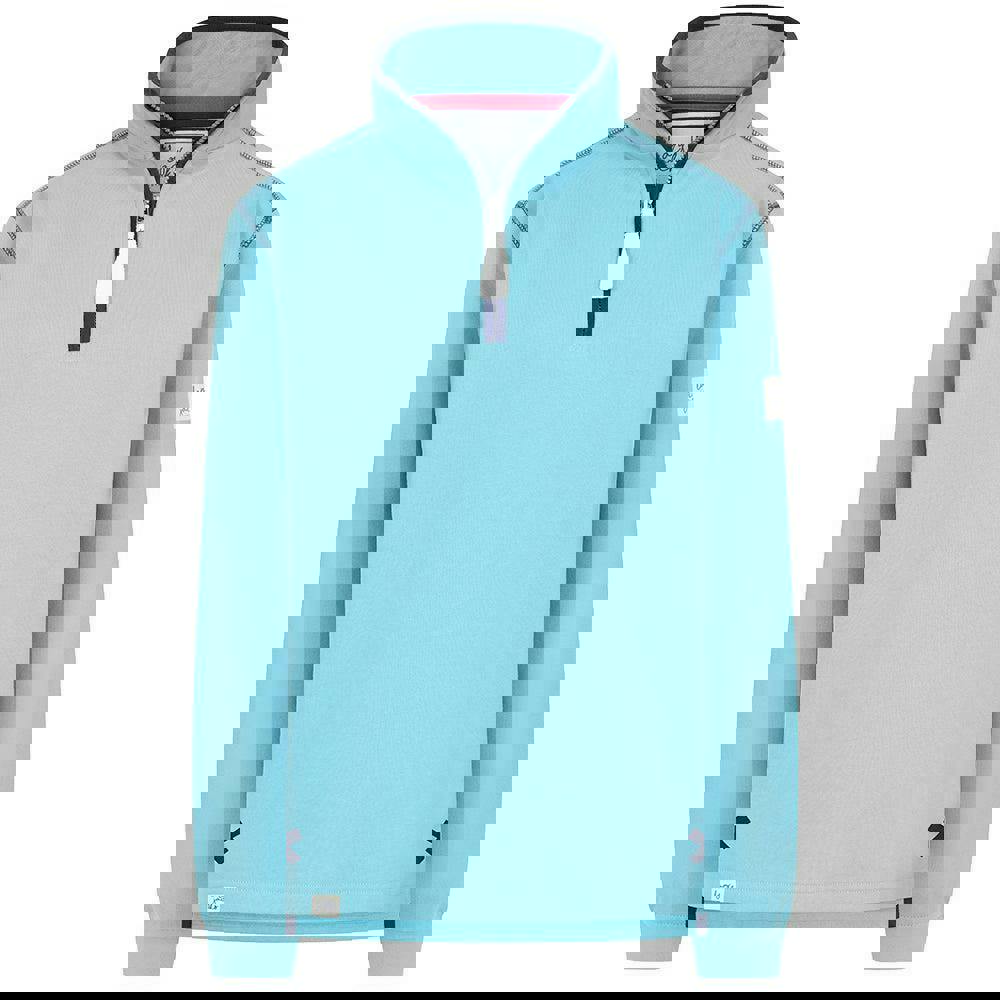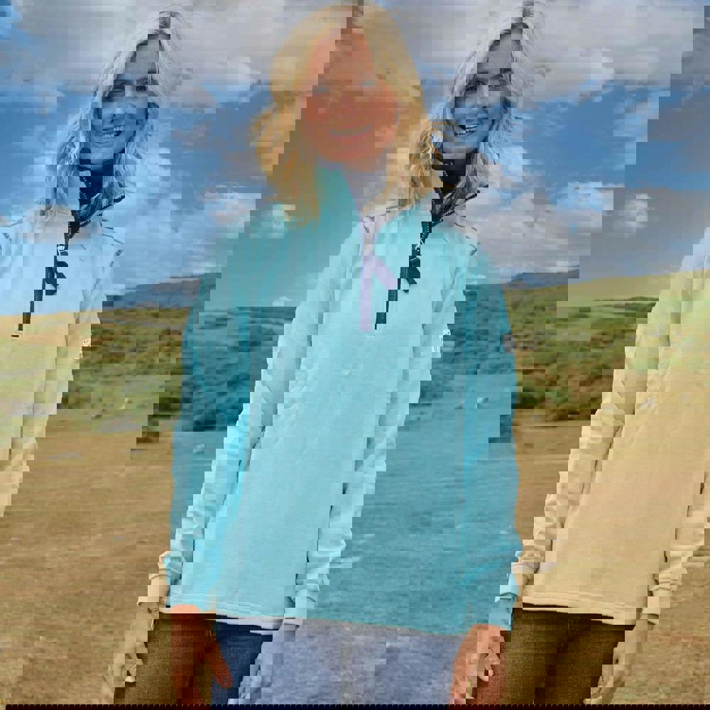 Refresh your casual wardrobe with this women’s quarter zip sweatshirt from Lazy Jacks in spearmint. Made from 100% cotton, it uses pre-washed fabric for a clean, plain finish with logo detailing. The long-sleeved silhouette is completed with a fused stand up collar and a quarter zip fastening for a neat, structured look.