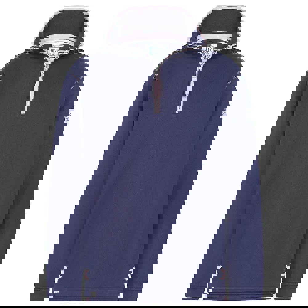 A fused stand up collar adds structure at the neckline, while the long sleeves and quarter zip fastening provide a practical, streamlined look.