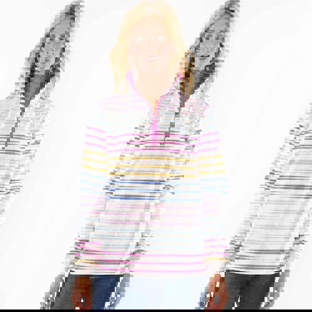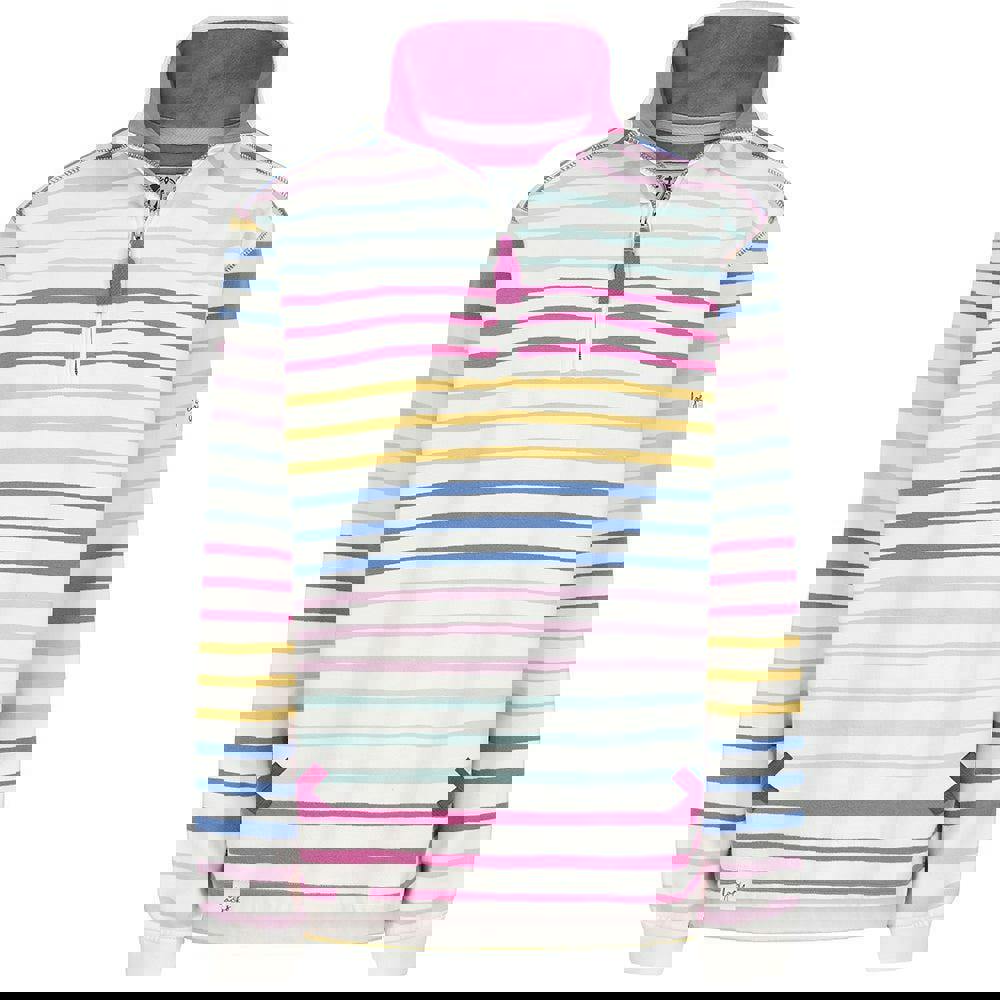 Made from 100% cotton, this women’s striped sweatshirt is finished with a pre-washed, soft-touch feel. The long-sleeved shape is topped with a standing collar and a quarter zip, offering a clean, practical neckline for everyday wear.