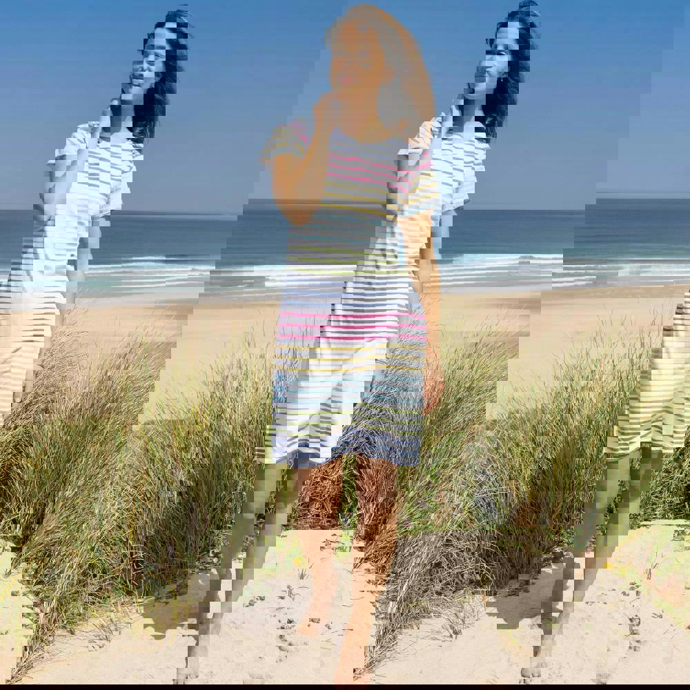 Lazy Jacks Women's Striped T-Shirt Dress - Rainbow