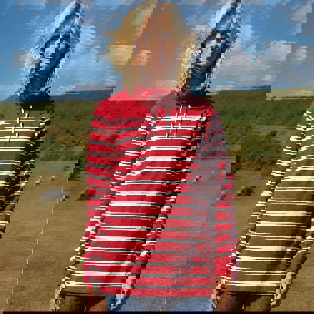Made from 100% cotton, this women’s sweatshirt is crafted in pre-washed fabric with a striped design. It has a roll neck with a drawcord for adjustable styling, and a simple pull-over fastening for easy wear. Long sleeves and fitted cuffs complete the silhouette, keeping the finish neat and defined.