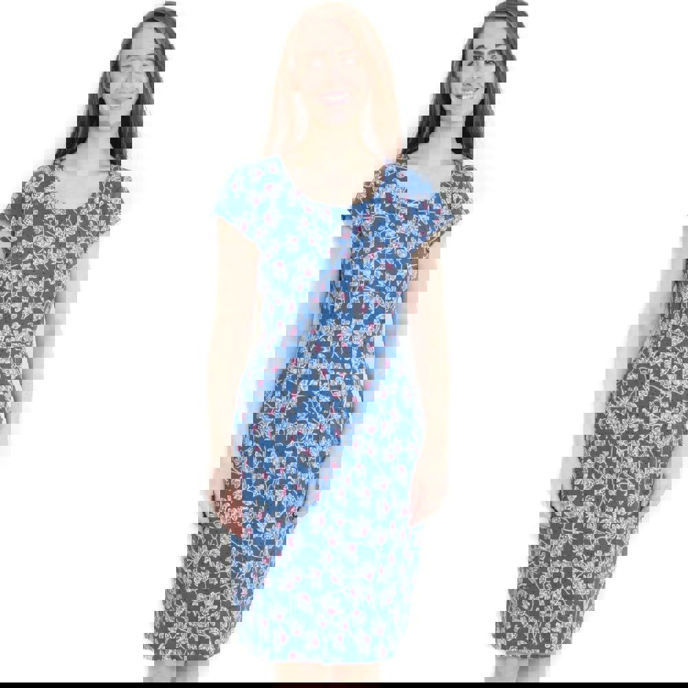 Refresh your everyday wardrobe with this Lazy Jacks women’s Wildflower dress in blue. Made from 96% cotton and 4% elastane, it has a soft-touch, pre-washed finish with breathable, shrink-resistant stretch fabric technology. The printed design is paired with a scoop neckline and capped sleeves for a clean, easy-to-wear silhouette.