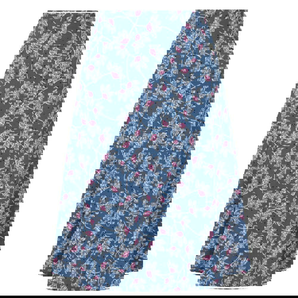 It comes in blue and pink with a wild flowers design and is cut in an A-line shape. A stretch waistline provides a flexible feel, while a branded patch adds a subtle finishing detail.