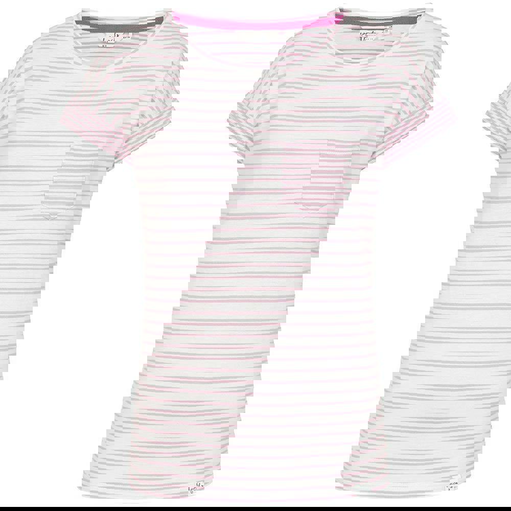 Bring a clean, casual look to your wardrobe with this women’s striped T-shirt in pink. Made from 100% cotton with a pre-washed finish, it offers a lightweight, breathable feel. The design combines plain and striped detailing with a logo accent, keeping the overall look simple and easy to wear.