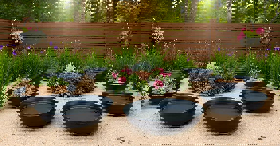 LBS Horticulture Plant Pot Saucers 32cm – Pack of 6 Heavy Duty Black Drip Trays for Indoor & Outdoor Pots – Durable Recycled Plastic Planter Base Water Catcher – Frost Resistant Garden Flower Tray