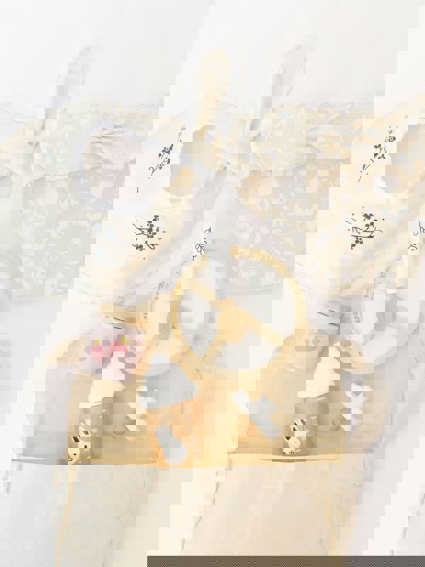 Finished in delicate pastel tones, the set combines natural cotton with exposed solid wood details for a classic look that suits a variety of doll and teddy play scenarios.