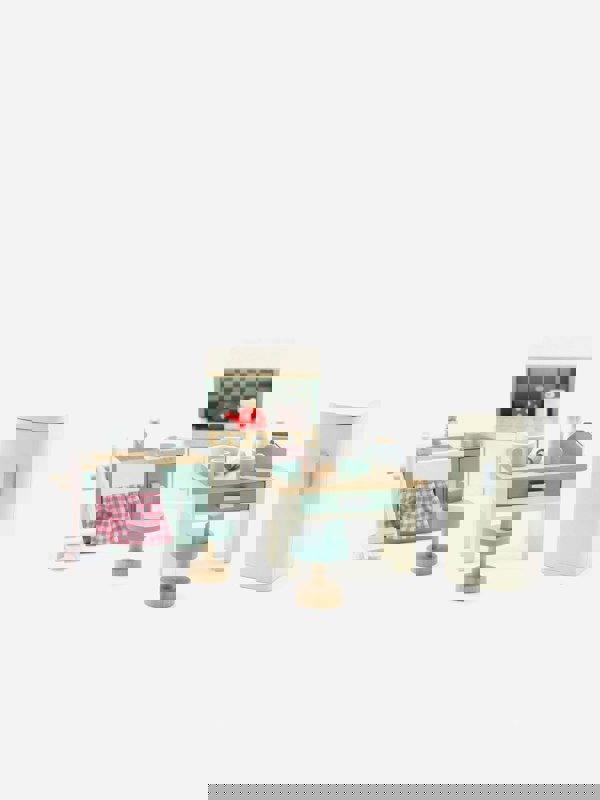 The Le Toy Van Wooden Dolls House Kitchen Furniture set is a timeless addition to any dolls house, designed to inspire imaginative play. This kitchen furniture set features a charming, traditional look and is made from FSC-certified wood. Suitable for ages 3+ years, it offers plenty of variety for setting up and rearranging a miniature kitchen scene.