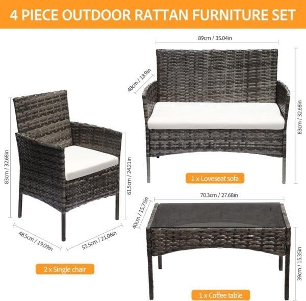 The 4 piece garden furniture set can be rearranged into different configurations for various occasions, allowing you to customize it to match your patio or deck and change it whenever you want. The