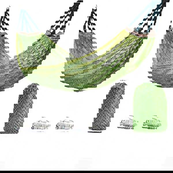 The Outdoor Ice Silk Mesh Swing Hammock boasts a stable load-bearing design, ensuring a safe and secure experience for users. The maximum load capacity is an impressive 250kg, making it suitable for people of all sizes. The hammock features reinforced iron ring hardware, which provides a firm structure and prevents the fabric from stretching or sagging over time.