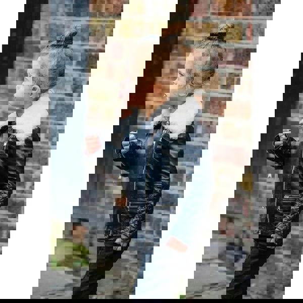* Girls Kids Cross Zip Jacket Biker Style Made From Soft Supple Real Leather